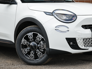 Is this the most eye-catching mainstream brand small hatch money can buy? Very possibly. You'll immediately notice the 'eye-lid'-style LED headlights. And possibly the fact that the usual central brand badge has been dropped in favour of the model number. In size and profile, the 600e isn't that far off the brand's 500X small SUV, the crossover theme here indicated by wheels of up to 18-inches in size, along with matt black skirts and wheel arches. There's 4.17-metres of body length, about 8cm more than this Fiat's Jeep Avenger close cousin. Inside, it's actually very similar to that Jeep, though Fiat has tried to disguise the fact by carrying forward the thin-rimmed two-spoke wheel and the climate controls from the smaller 500e model. The 10.25-inch centre touchscreen is shared with the Avenger; and there's a 7-inch digital instrument display. Various handy cabin storage compartments collectively offer 15-litres of stowage space. The quality of the materials used around this interior is nothing to write home about. But there's plenty of cabin storage space. And some fashionable touches like the lovely variant-branded magnetic folding panel on the centre tunnel; and the intricately-stitched seats of the top 'La Prima' version. Fiat engineers focused quite a lot on rear seat occupants. Getting inside has been made easier by making the door ring 37 millimetres wider. Legroom and roominess in the back was maximised by moving the design's fundamental 'H' points, which allowed for a gain of an extra 30mm of legroom. The result isn't quite as spacious as those claims would lead you to expect and adults in the back behind lanky front occupants will need co-operation from those ahead. Boot space is average at 360-litres. If you fold the rear seat flat, up to 1,231-litres of luggage room can be freed up.