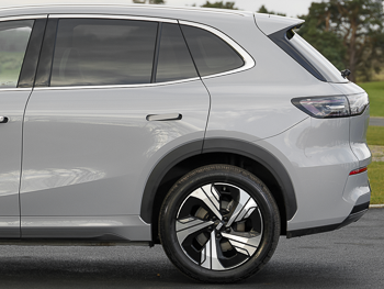You're unlikely to choose an EX5 on the basis of the way it looks, but it's quite a cleanly styled design, with smooth surfacing and minimal crease lines. Without the badging, you might struggle to identify which Chinese brand made it though. There are ultra-slim LED headlights, subtle silver roof rails and the car rides on either 18 or 19-inch alloy wheels. In terms of size, at 4.61m long, 1.90m wide and 1.67m tall, it takes up a similar pavement footprint as key segment rivals like Hyundai's IONIQ 5, Skoda's Enyaq and Nissan's Ariya. Approach the car and when you're close to the driver's door, the handles automatically pop out. Inside, there's the usual Chinese environment - faux leather upholstery and complicated-looking twin screens, the instrument cluster featuring a 10.2-inch display. But the 'Geeluxe' seat covering is a little more like the real thing than usual and the 15.4-inch centre display for the 'FLYME AUTO' infotainment system is at least assisted in climate functions by a few physical controls (though you still need the central monitor to adjust temperature, fan speed or the rear demister). The second row seating is spacious and comfortable and the flat floor means a middle-seated adult could be accommodated if necessary. Second row folk get the usual appointments - twin vents, map pockets, big door bins, a folding armrest with cup holders and USB-A and USB-C charging ports. There's no third row option. Out back, there's a reasonably-sized 461-litre boot with a deep storage area beneath. Folding the rear bench frees up as much as 1,877-litres. There's no under-bonnet 'frunk' space though.