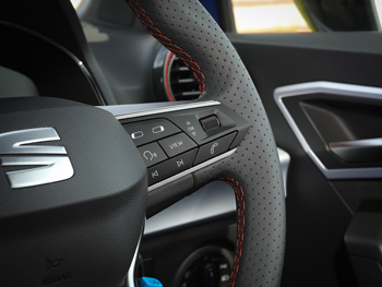 | Perforated flat bottomed leather steering wheel/gear knob/handbrake with red stitching and FR logo | Potentiometer |