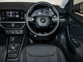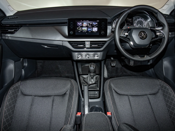 Single front passenger seatSkoda lettering on steering wheel